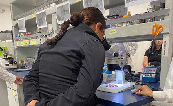 Después de la parte expositiva, el grupo se dividió en equipos para participar en recorridos guiados por distintos laboratorios y unidades de investigación. Durante el primer bloque, enfocado en las Ciencias de la Tierra, se conformaron tres equipos de 12 estudiantes cada uno, que rotaron por distintas áreas con intervalos de 15 minutos.