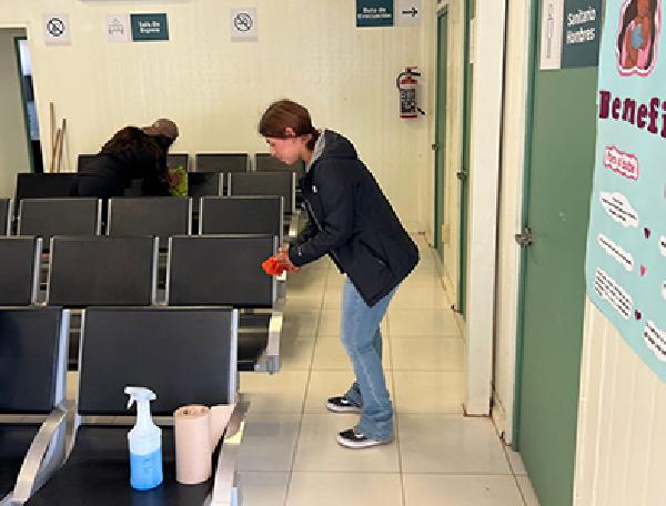 Bajo la temática “Limpieza comunitaria como práctica ecológica y de promoción de la salud”, se organizaron brigadas que realizaron diversas acciones: recolección de residuos, barrido de hojas secas, pintado de troncos de árboles con cal protectora y limpieza profunda de las áreas comunes del centro de salud.